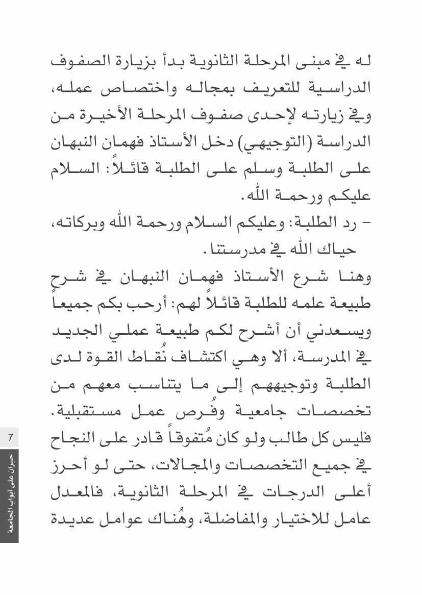 حيران على أبواب الجامعة، رواية تحكي بأسلوب قصصي سهل طريقة اختيار التخصص الجامعي المناسب، وتجيب على الكثير من الأسئلة والتساؤلات التي يحملها الطلبة حول ذلك.